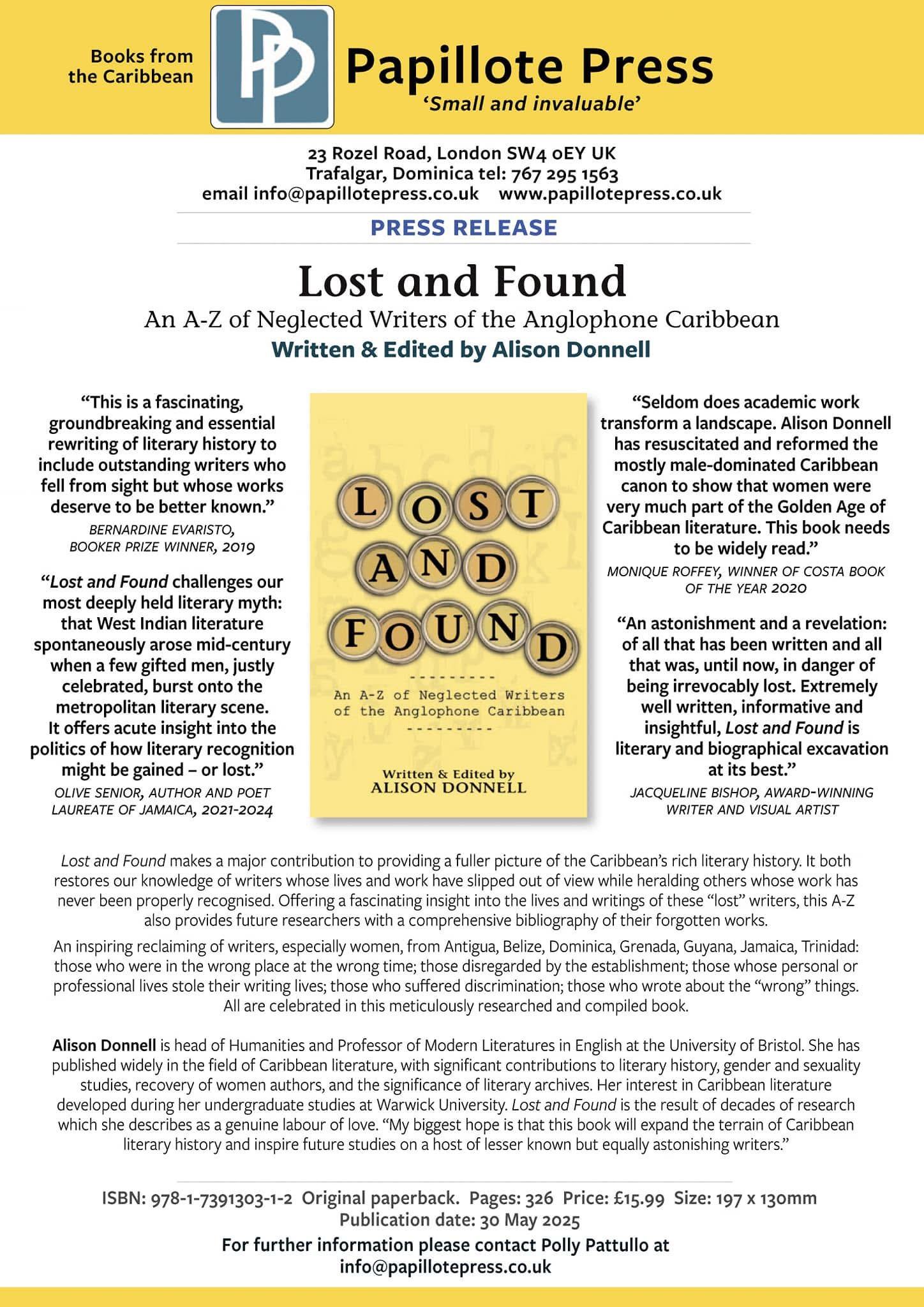 “An inspiring reclaiming of writers, especially women, from Antigua, Belize, Dominica, Grenada, Guyana, Jamaica, Trinidad: those who were in the wrong place at the wrong time; those disregarded by the establishment; those whose personal or professional lives stole their writing lives; those who suffered discrimination; those who wrote about the “wrong” things.